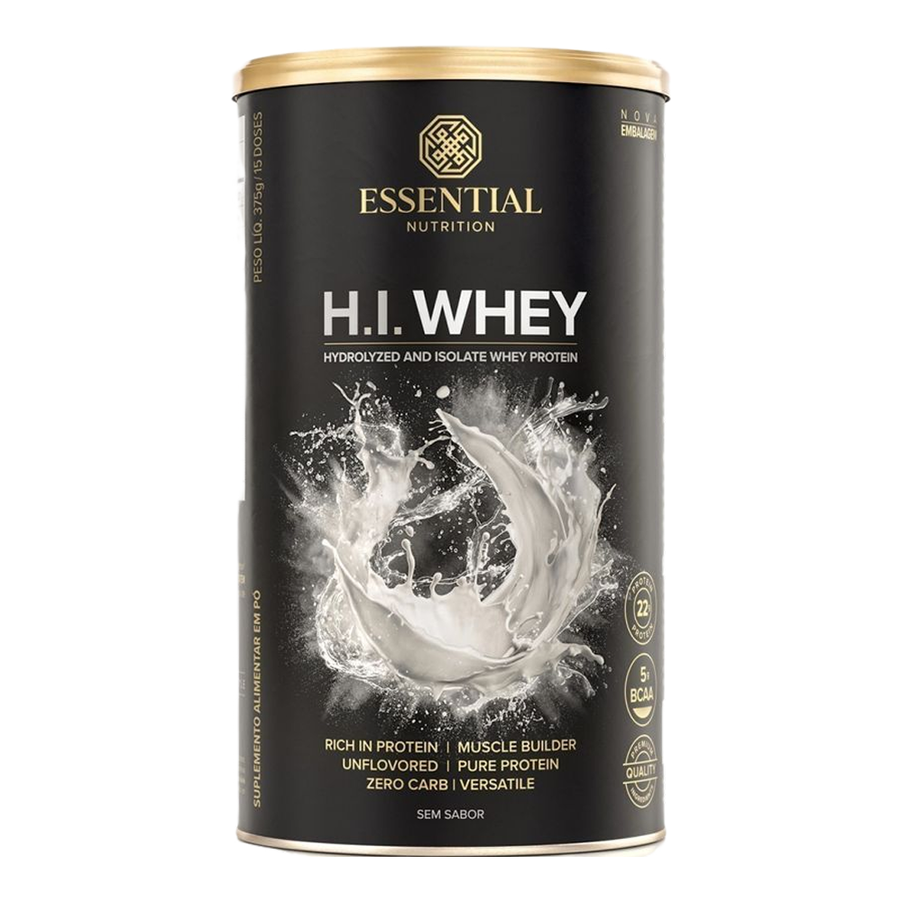 O H.I. Whey da Essential Nutrition é um suplemento proteico puro, composto exclusivamente por whey protein hidrolisado e isolado, sem adição de aromas, adoçantes ou outros ingredientes desnecessários.