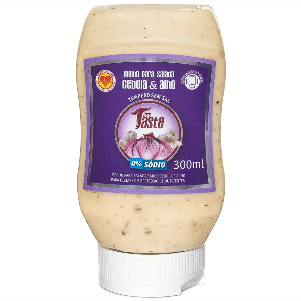 O Molho para salada Cebola e Alho, da Mrs Taste é um molho ideal para pessoas que se preocupam com uma alimentação saudável e equilibrada. Ótimo para deixar a salada bem temperada e saborosa. Não contém sódio, glúten e lactose. Com baixo teor de caloria e sem adição de açúcar.